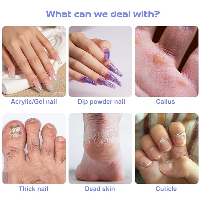 - Multifunctional Nail Drill Kit: Comes with 13800RPM powerful rotary motor and metal nail drill bits, this electric nail file can be used for all-around shaping, buffing, grinding, polishing, removing for acrylic nails, poly gel nails, artificial extension nails, thick nails, builder gel, dip powder, fake nails, natural nails, and cuticle dead skin.