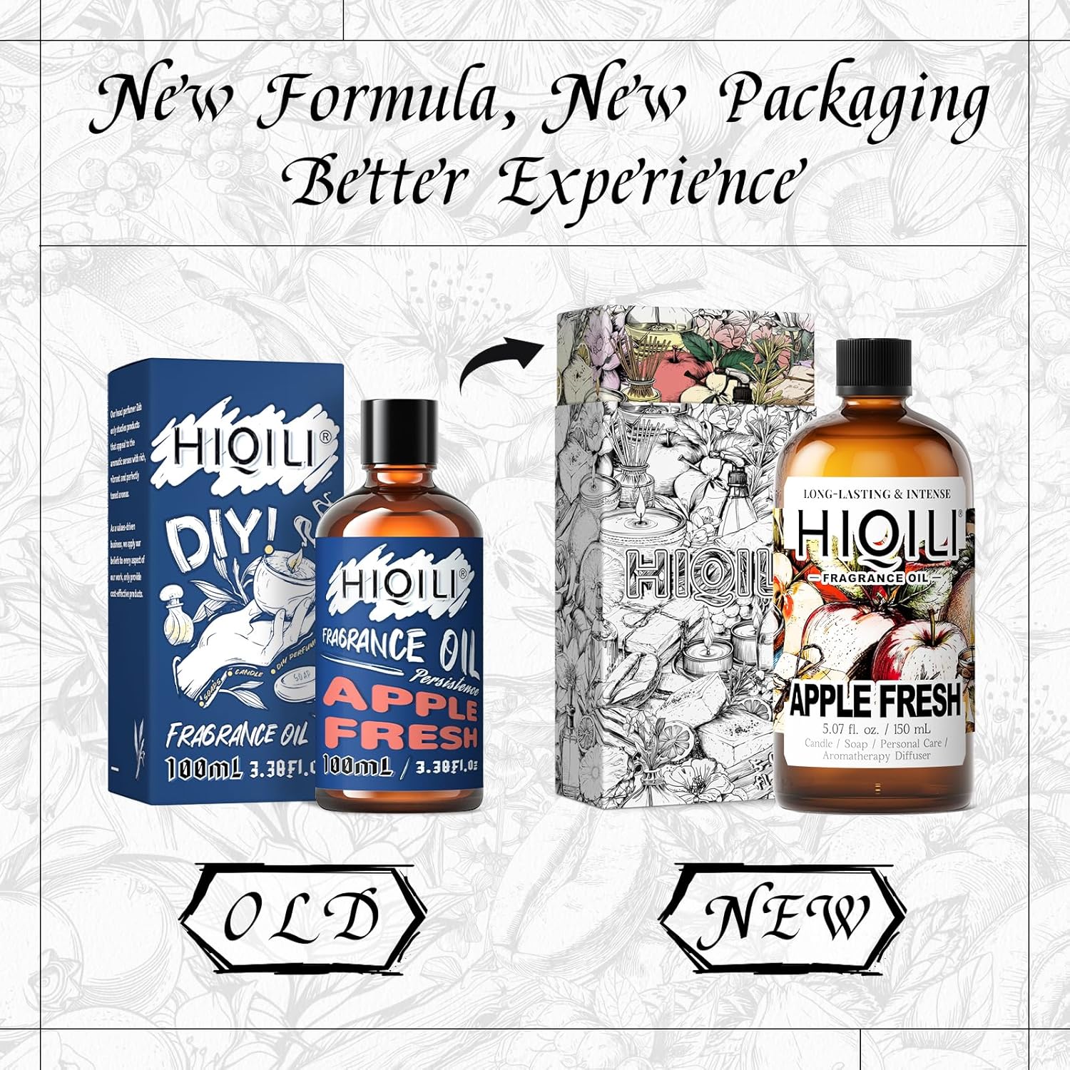 HIQILI Apple Fresh Fragrance Oil for Home Diffuser, Candles, Soaps, Bath Bombs & Perfume Making, Long-Lasting Fruity Scent - 5.07 Fl Oz