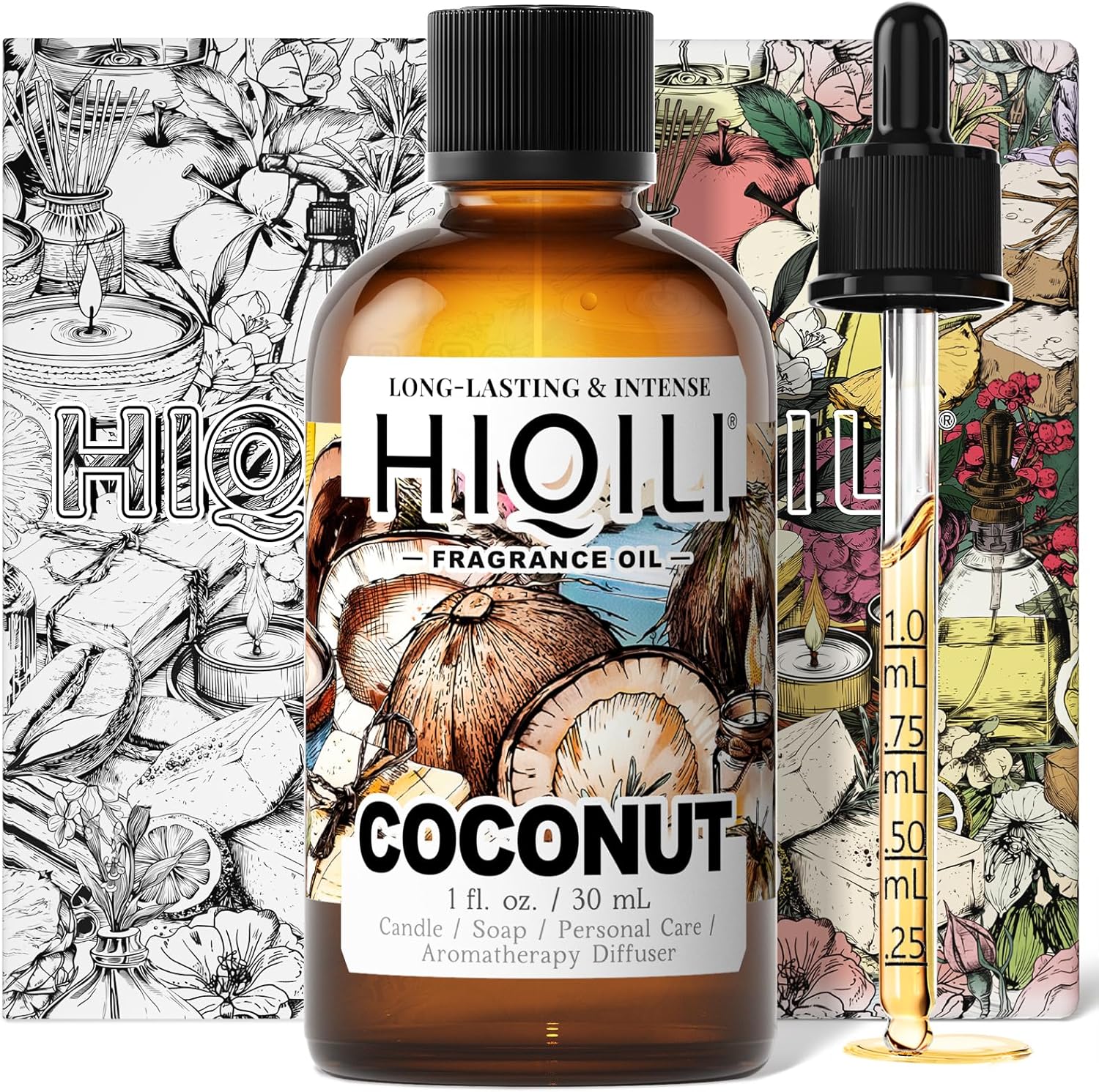 HIQILI Coconut Fragrance Oil for Home Diffuser, Ideal for Making Candle, Soap, Body Spray, Women's Perfume, Creamy Scents - 1 Fl Oz