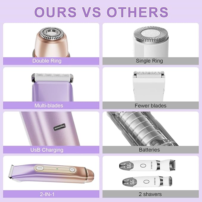 - Two - in - One Grooming Solution: This women's electric shaver dual head design integrates body and facial shave head. No more hassle of switching heads. It delivers precise and smooth hair removal across the face, body, and sensitive areas.