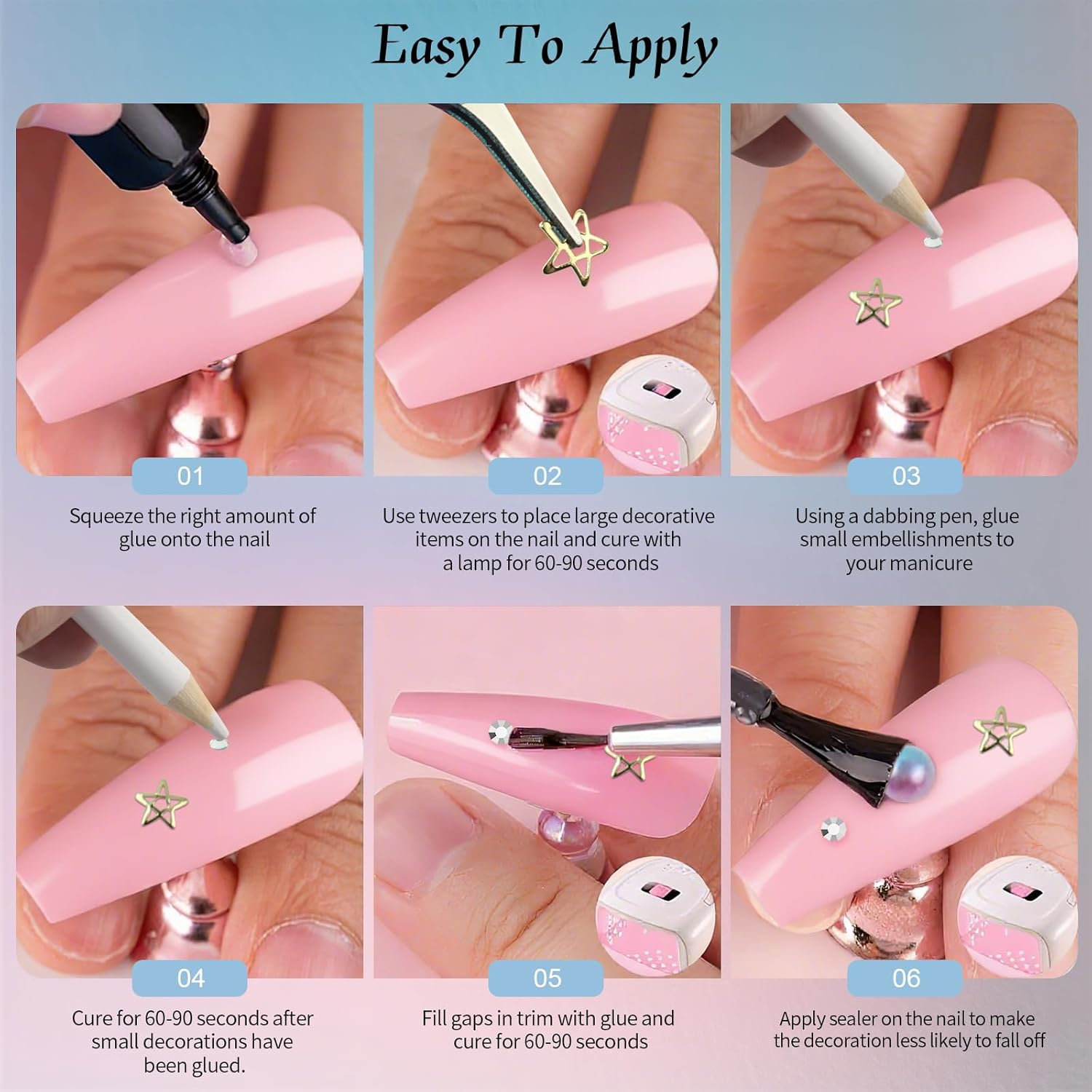 - Quality Materials: All nail charms and gems are made of premium materials. The rhinestones have strong adhesion (easy to stick with glue, not included) and won’t easily fall off. The gold stickers are durable, with clear patterns that don’t fade or peel, ensuring your nail art stays gorgeous for a long time. Safe for all - day wear, even suitable for sensitive nails.